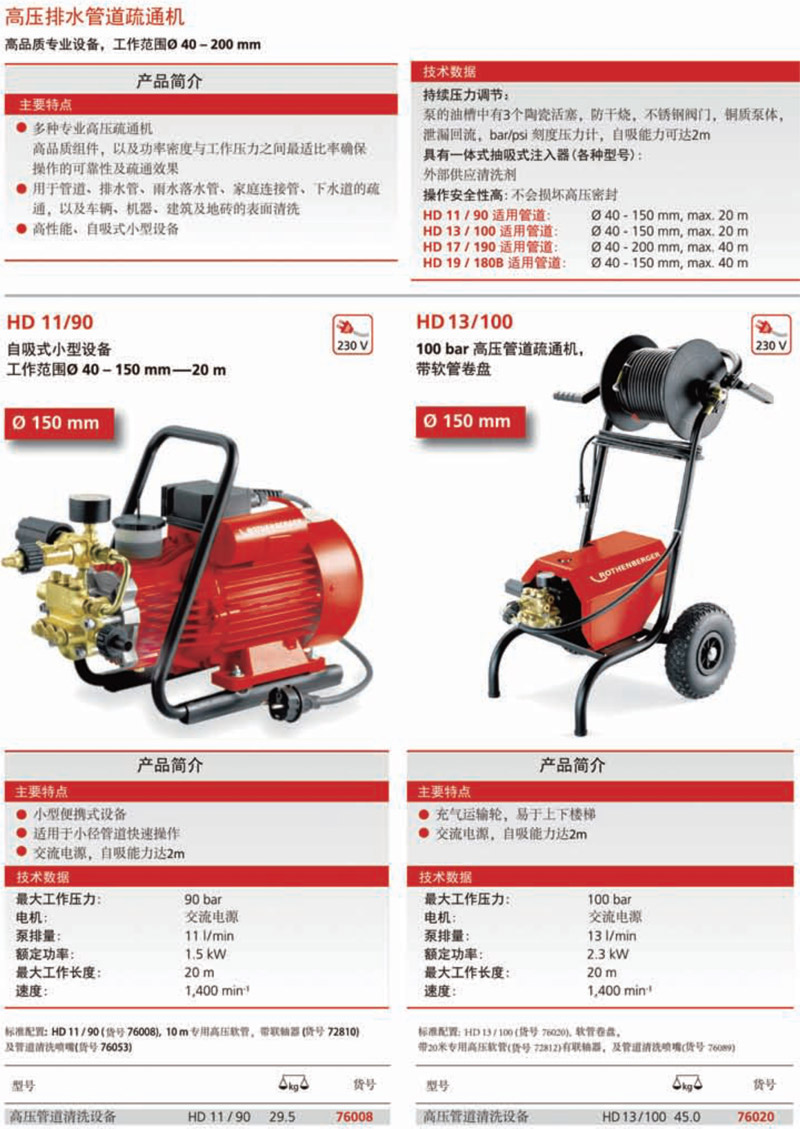 • HD 11/90 自吸式小型高壓排水管道疏通機
